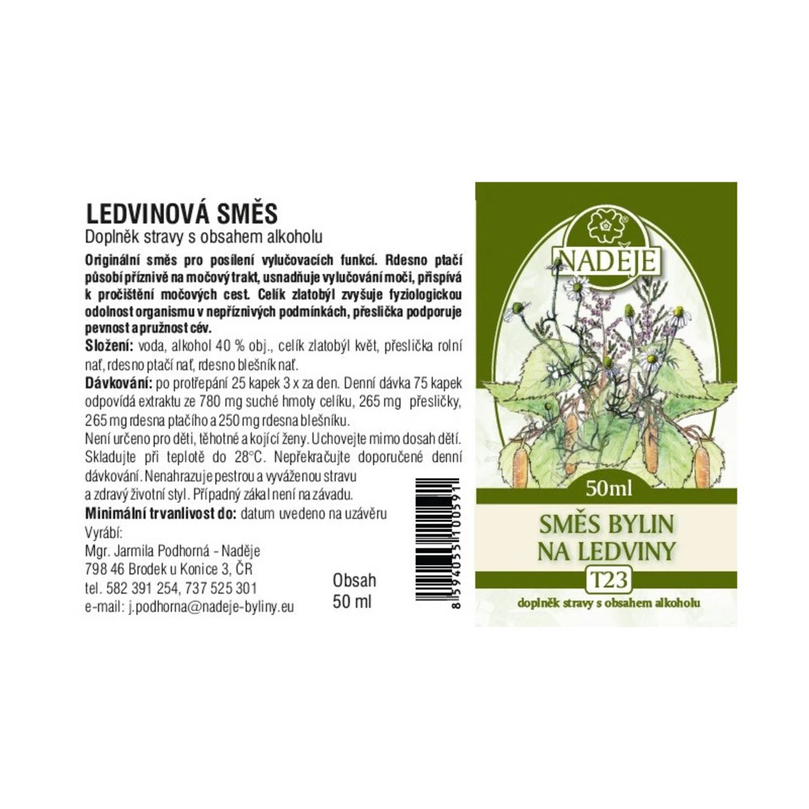 Naděje - Podhorná Náděje - Podhorná Zmes bylín na obličky, 50 ml