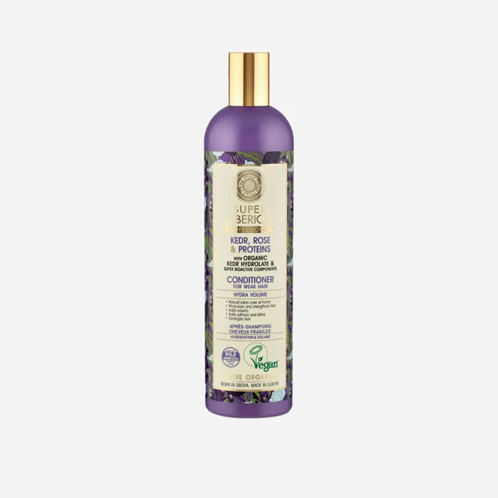Balzam z rady Super siberica Professional vyživuje a hydratuje oslabené vlasy, dodáva objem a lesk, uľahčuje česanie. Obsahuje hydroláty z cenných sibírskych bylín, rastlinné oleje a proteíny. Hydrolát je koncentrovaný koktail vitamínov a stopových prvkov získaných z rastlín metódou destilácie.
