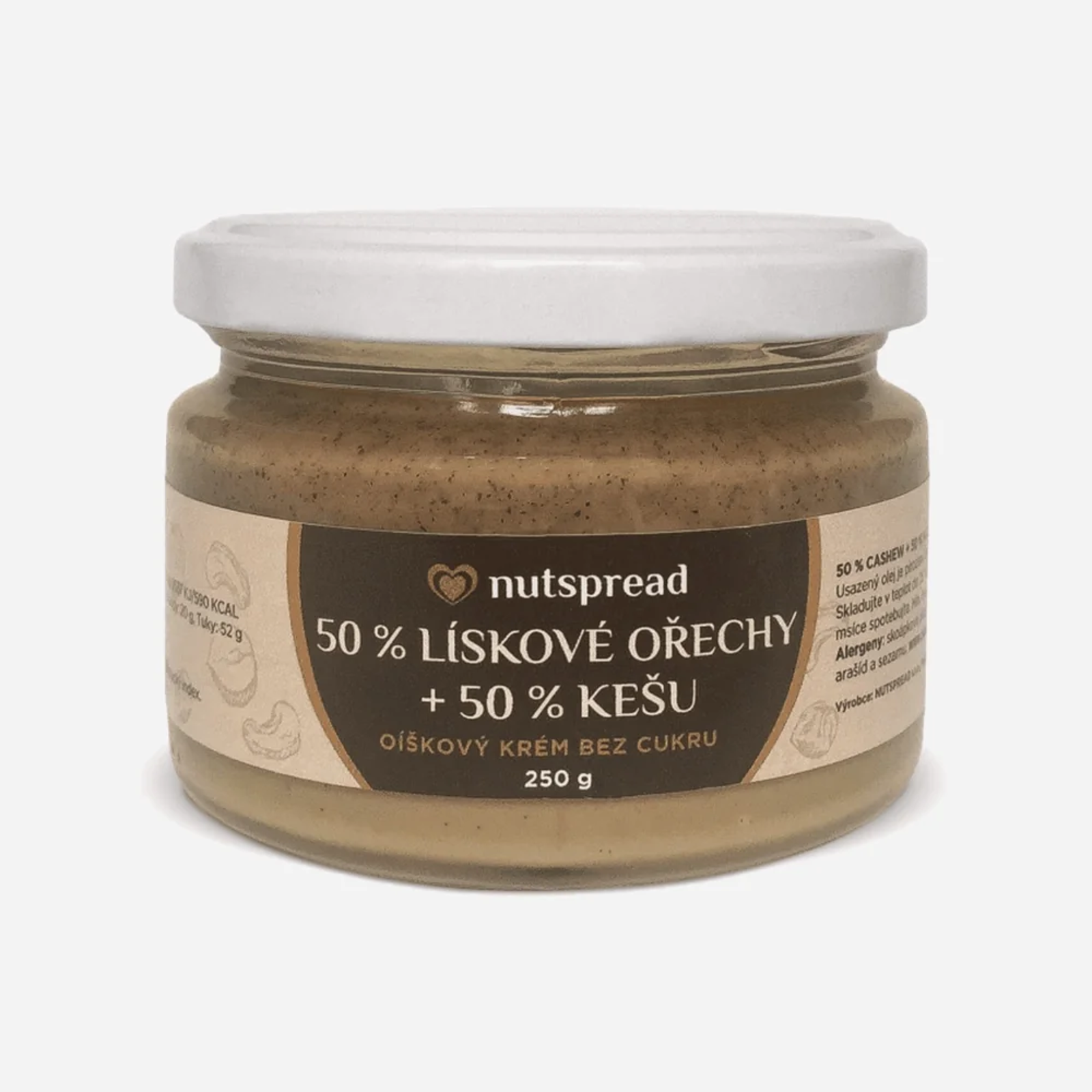 Spojenie lieskových orieškov a kešu nám vytvorí lahodnú a jemnú chuť, ktorá je blízko podobná nátierke Milky Way, ktorá sa už nepredáva, ale veľa z nás si ju pamätá. Veľký rozdiel je ale v zložení, pretože v kréme od značky Nutspread nájdete 100% orechy.