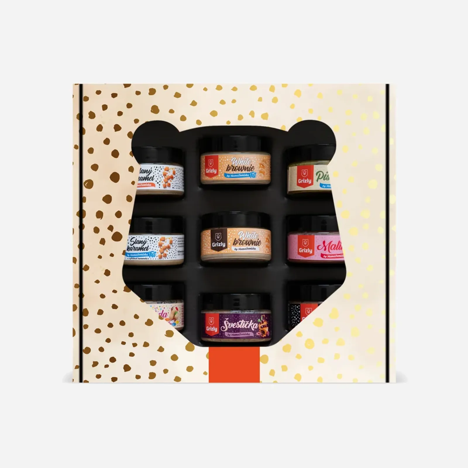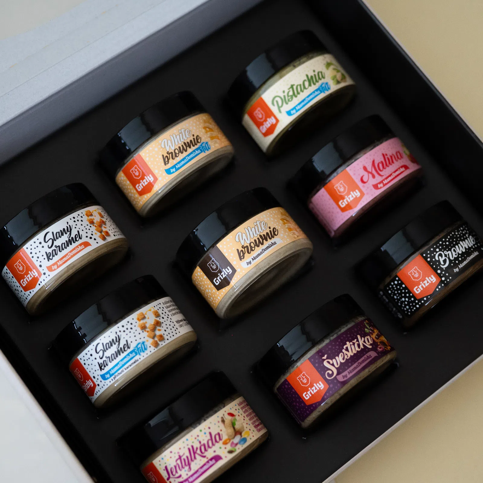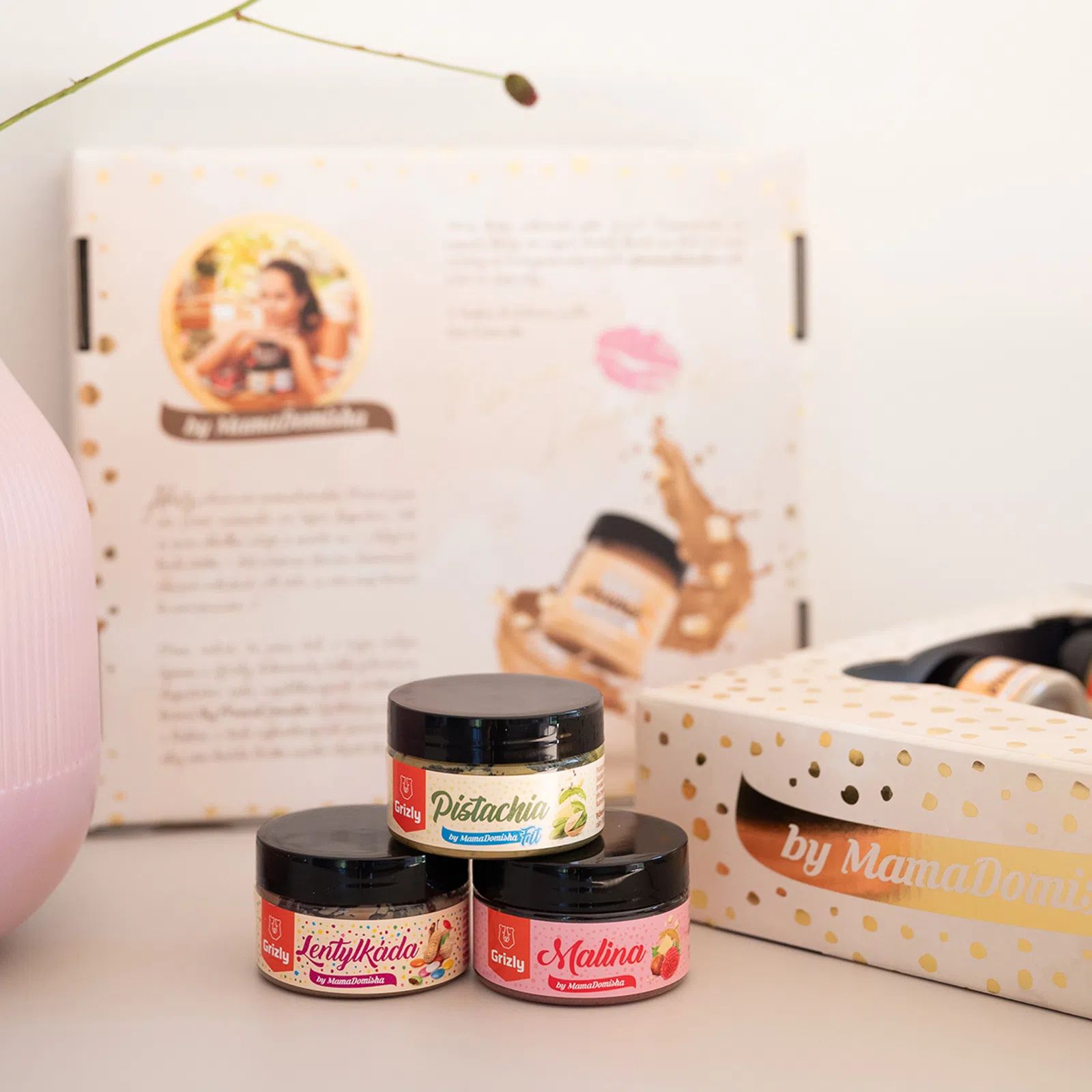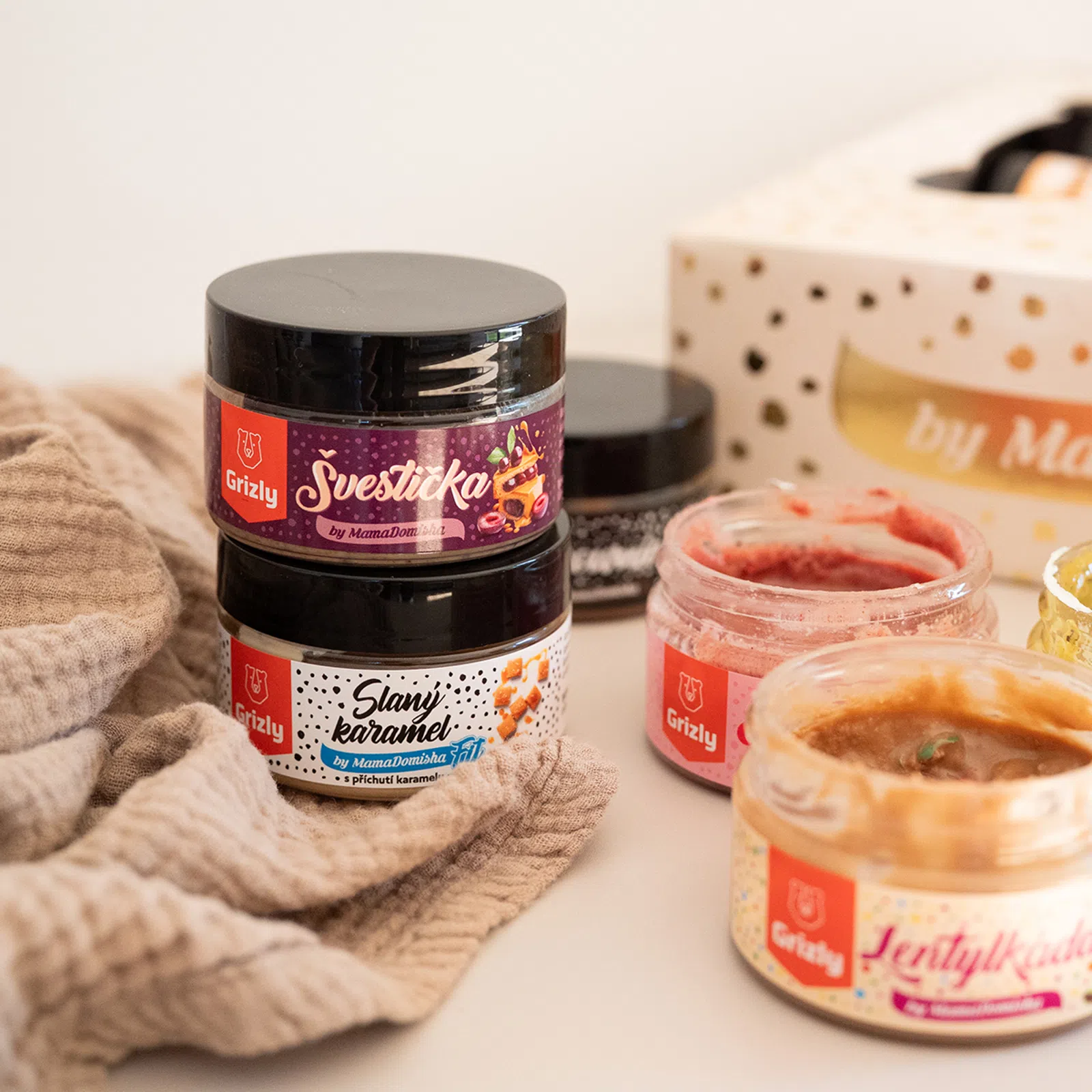 Ak viete o niekom, kto si potrpí na sladkosti, venujte mu Ochutnávkový set ako darček! Radosť určite urobí aj Bestseller set, ktorý ukrýva štyri veľmi obľúbené orieškové krémy z dielne GRIZLY by @mamadomisha.