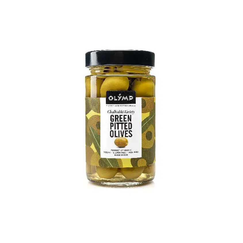 Zelené olivy bez kôstkyGrécke zelené olivy bez kôstky naložené v slanom náleve. Veľkosť olív Giant.