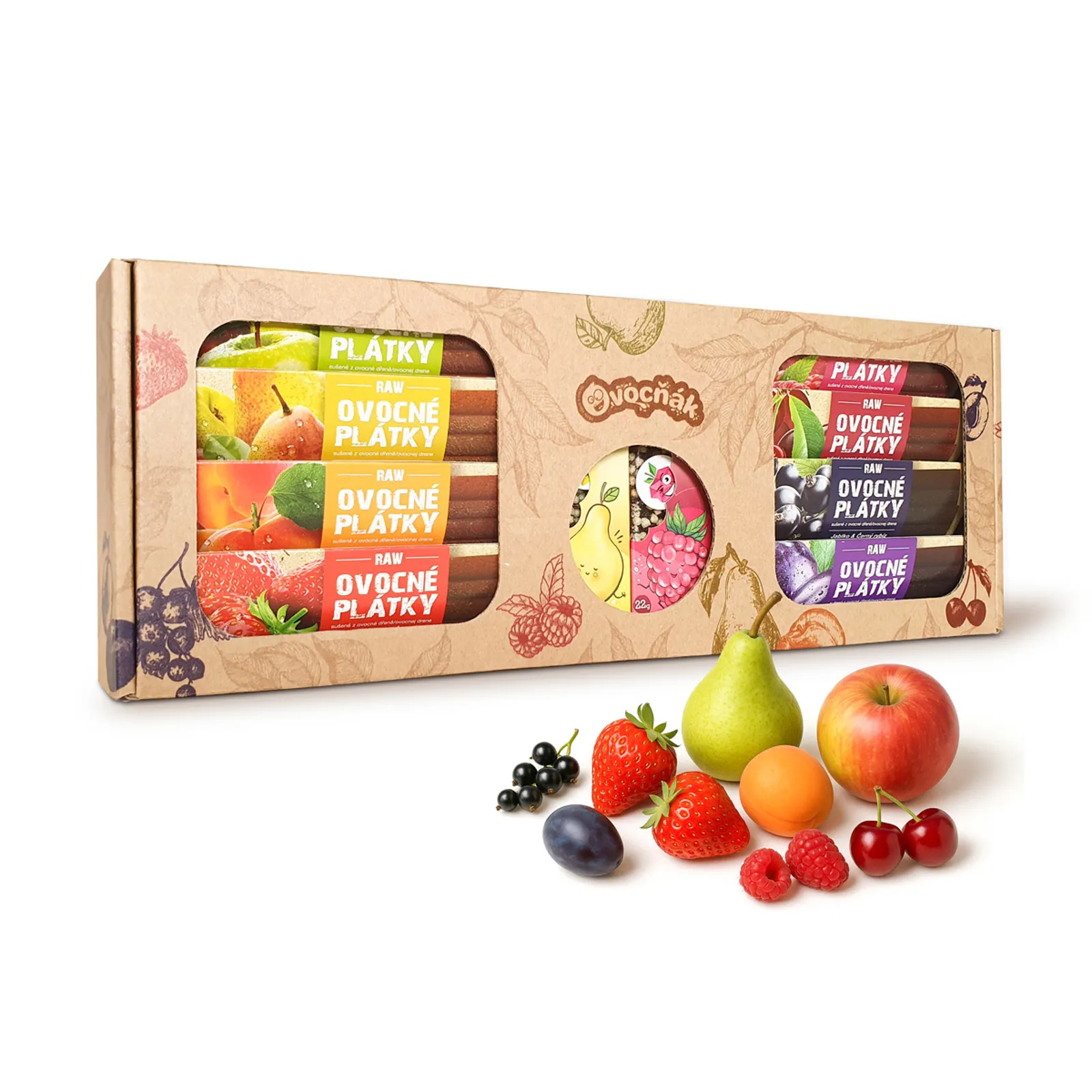 Darčeková „bonboniéra” v ktorej je poctivá dávka vitamínov v podobe 8 balení ovocných plátkov a navyše aj 2 balenia chrumkavých PUFov z hrušiek a malín. Vyskúšajte všetky chute ktoré ponúka, alebo len jednoducho urobte radosť svojim blízkym.