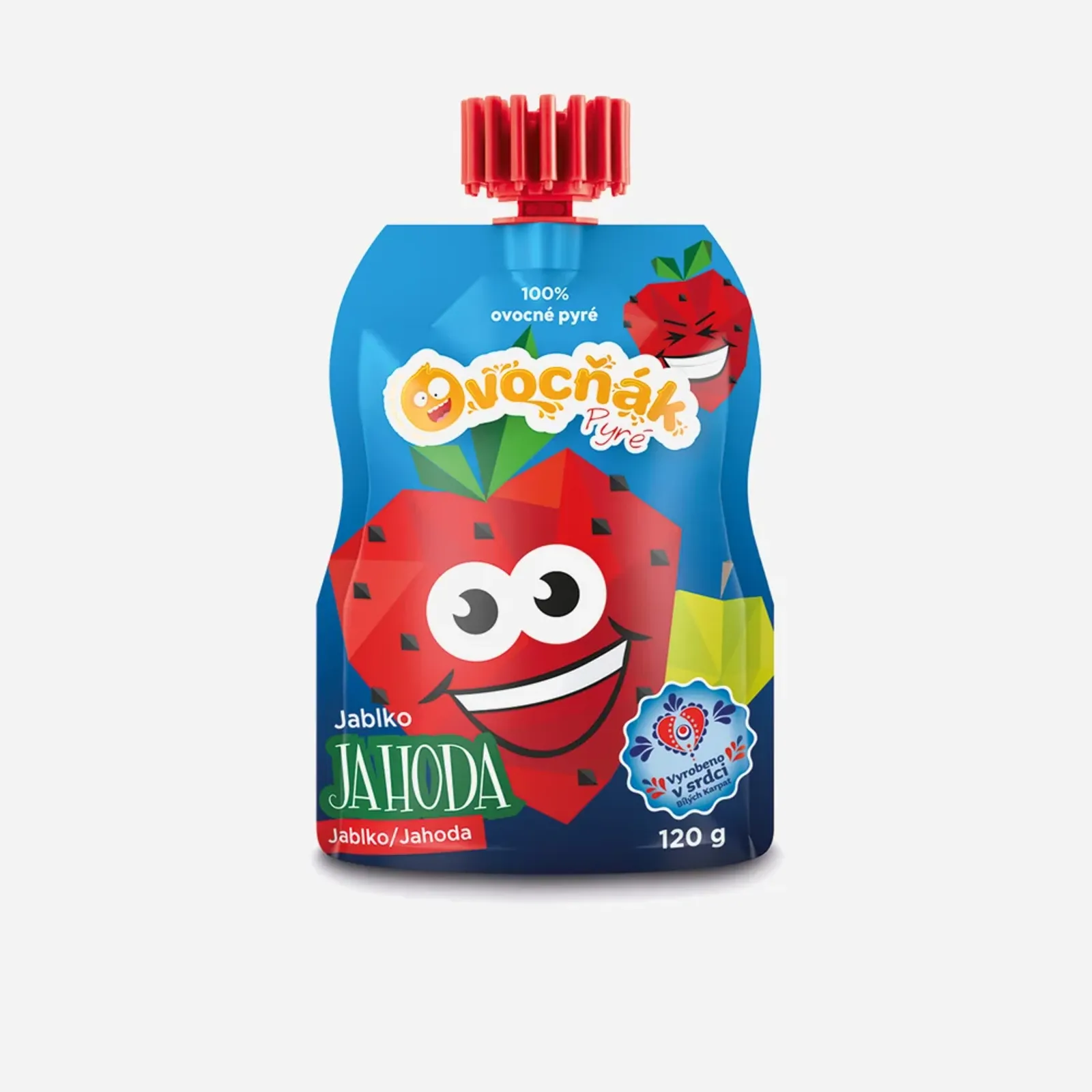 Na týchto 120 g bolo spracovaných 160 g čerstvých jabĺk a jahôd, plných vitamínov a minerálov. Jahody sú veľmi bohaté na vitamín C a organických kyselín. Jahody sú typickou plodinou našich krajín a preto sa výrobca zameriava hlavne na miestnej pestovateľov. Vďaka pasterizácii boli odstránené všetky alergény prvky ako histamín a nie je sa tak napríklad báť.