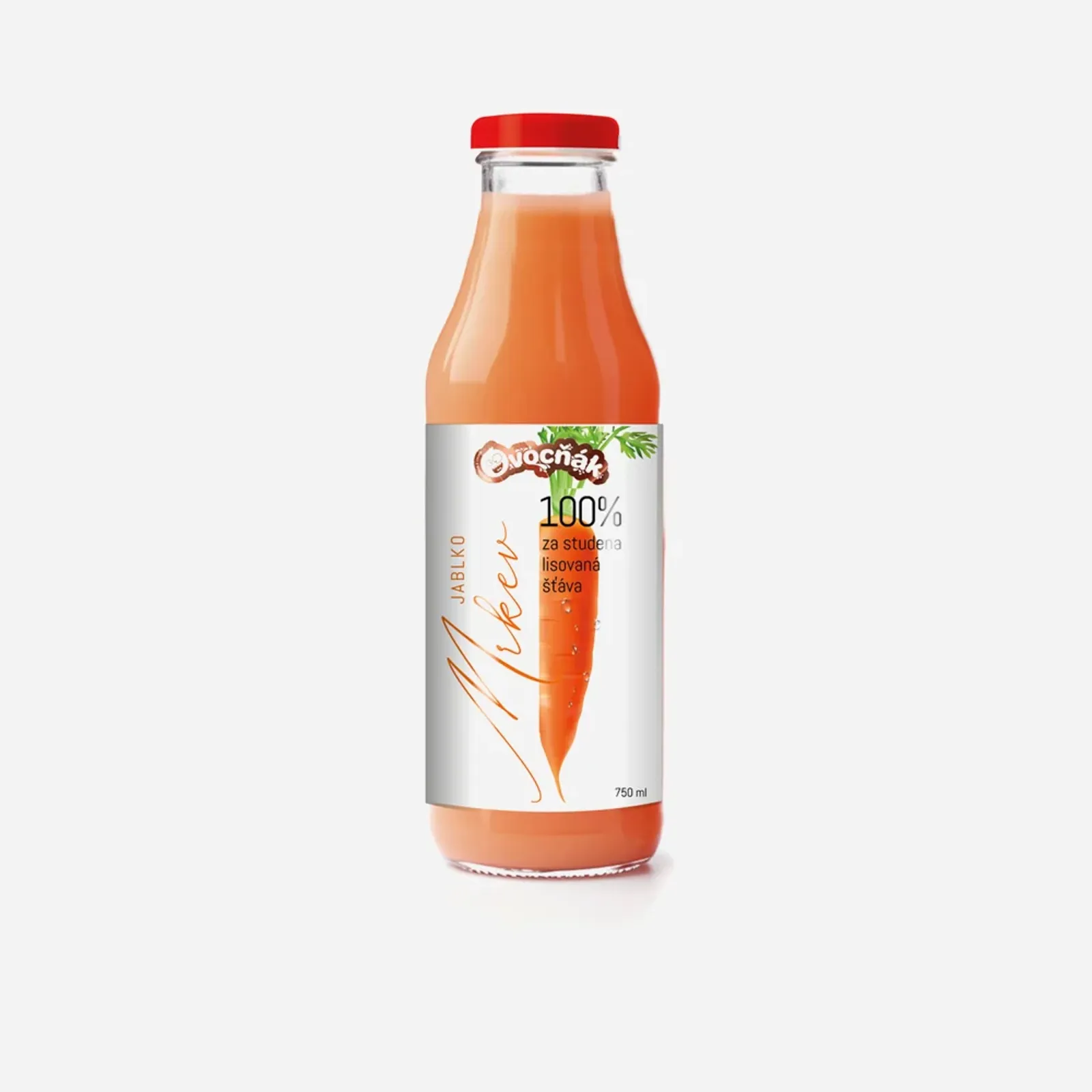 Zloženie: Jablčná šťava 80%, mrkvová šťava 20%.