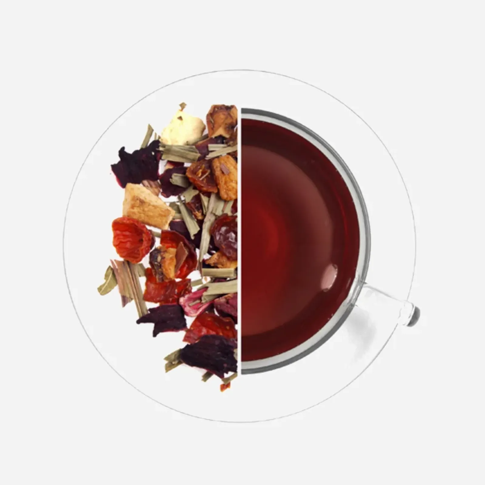Zloženie: jablká, šípok, hrozienka (hrozienka, slnečnicový olej), ibištek, kľukva veľkoplodá (kanadská brusnica) (min.8,4%) (kľukva, cukor, slnečnicový olej), citrónová tráva, pomarančová kôra, aróma brusníc (min. 1,9%), jahody (min.1,6%), aróma, listy jahody (min.0,5%).
