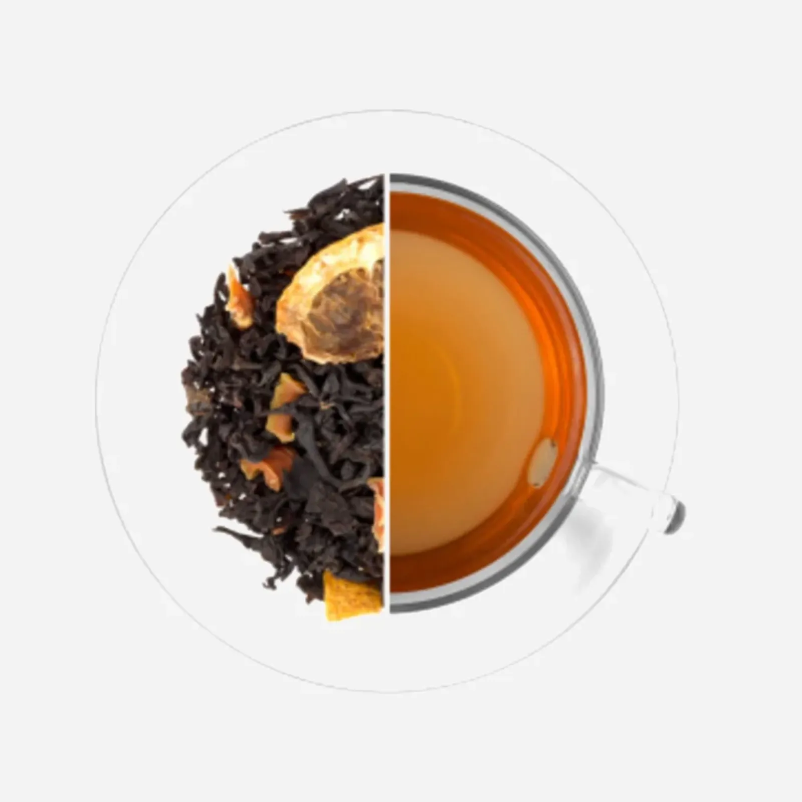 Jedinečná kombinácia čierneho aromatizovaného čaju s exotickým pomarančom a bergamotom. Výrazný arómou aj chuťou.