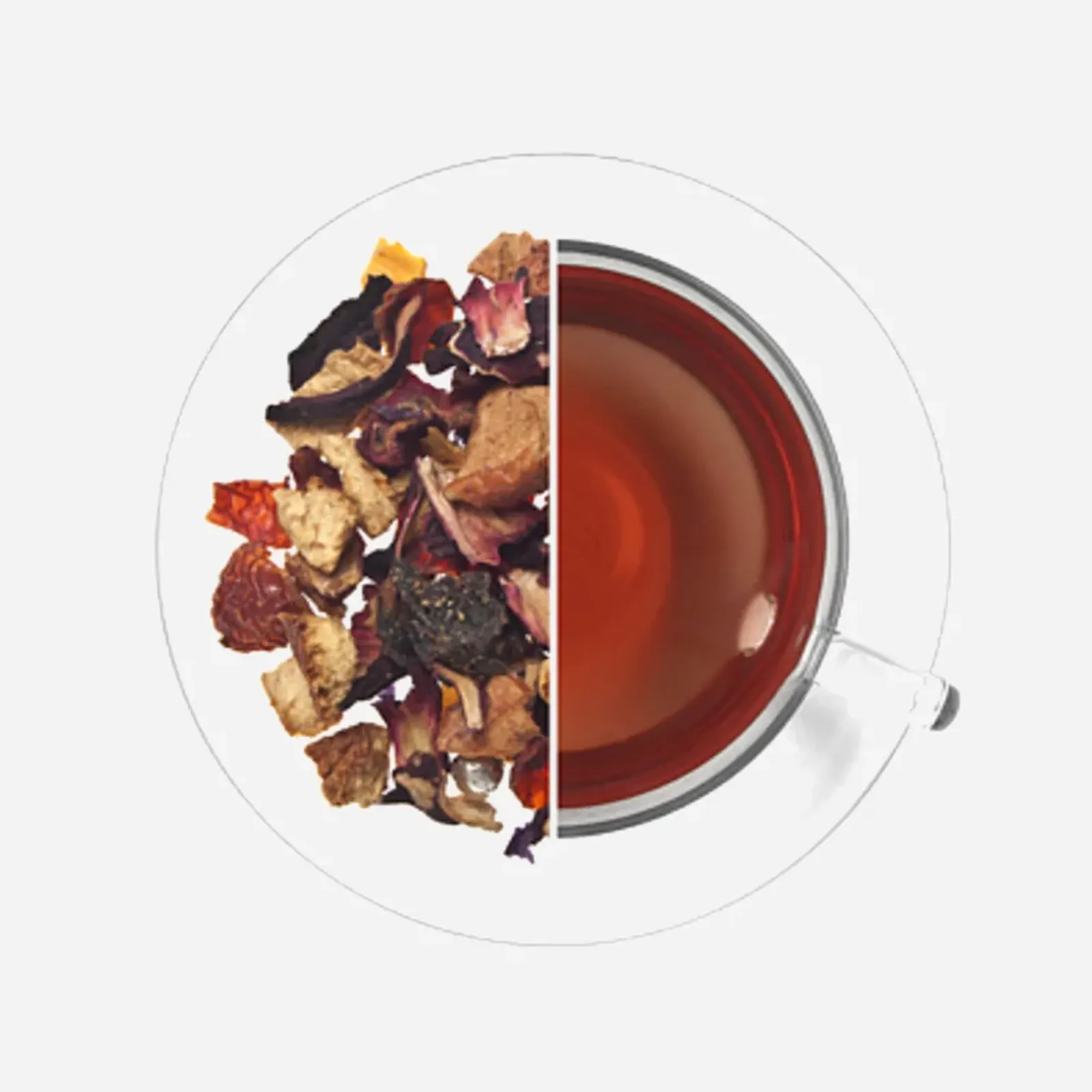 Ovocný čaj s ibištekom s čarovnou chuťou sladkého karamelu a zimného korenia.