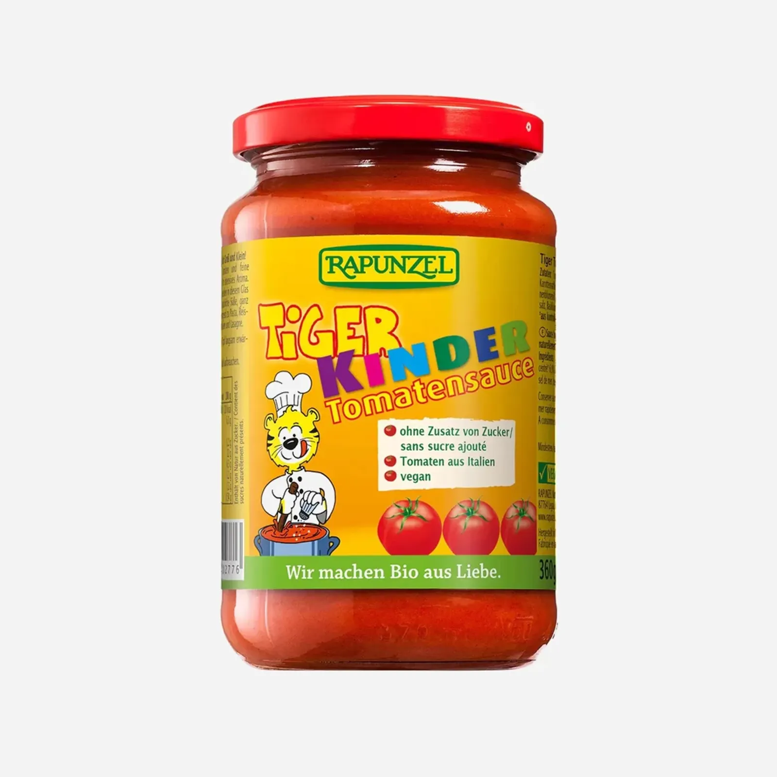 Bežné omáčky na cestoviny sú preto väčšinou pre deti príliš riedke a málo sladké. Vysoký podiel na slnku dozretých talianskych paradajok odrody Mauro Roso, vyšľachtenej tradičnými postupmi priamo na použitie v ekologickom poľnohospodárstve, dáva Tygrovi jeho typickú chuť. Tiger neobsahuje žiadny pridaný cukor a príjemnú sladkosť mu dodáva iba zahustená mrkvová šťava. Používa sa hlavne na cestoviny, ale aj na kuskus, pšeno a podobne.