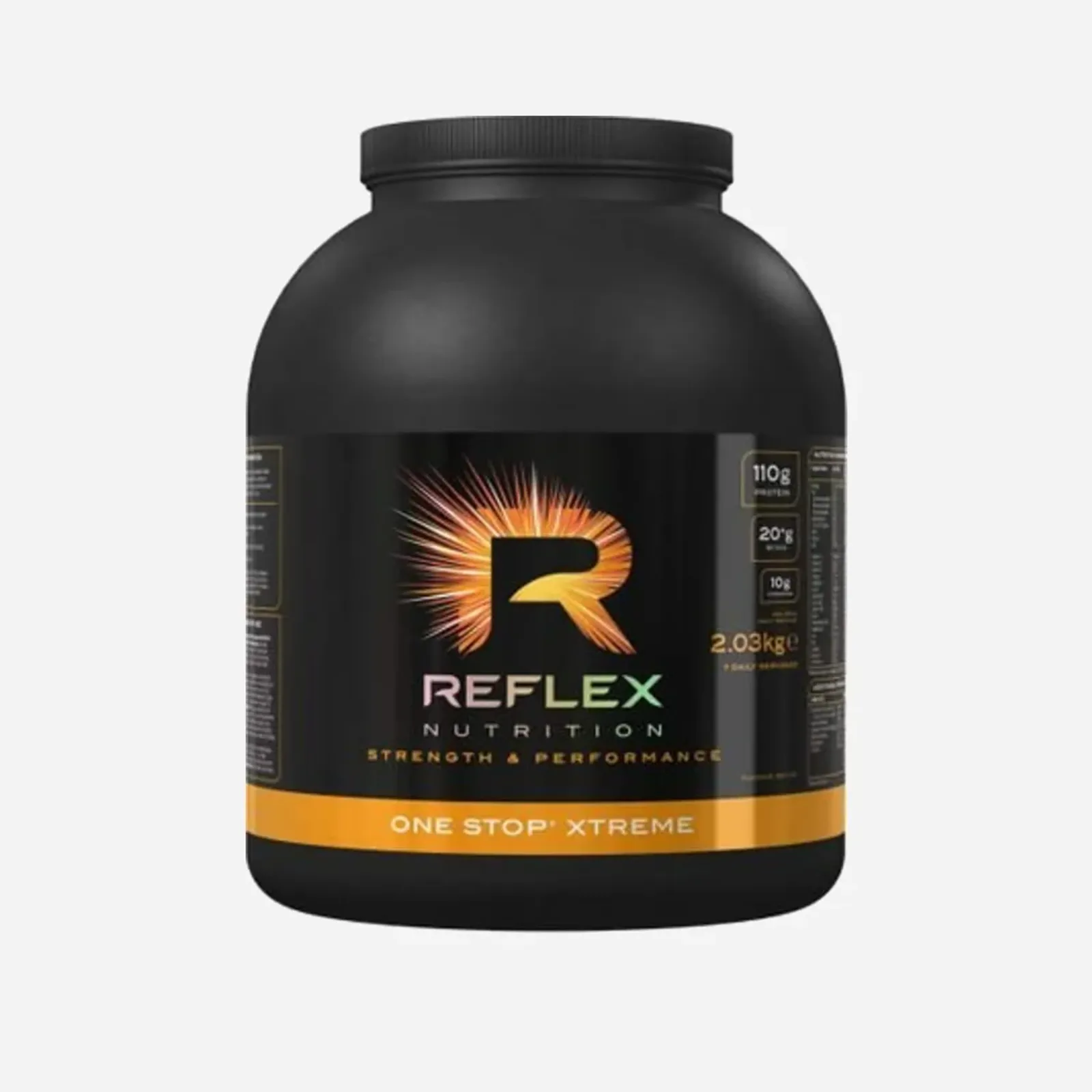 je najsilnejší hardcore verziou spoločnosti Reflex Nutrition, ktorá bola vyvinutá za posledných 15 rokov! Koncepcia celého produktu je určená pre všetkých športovcov, ktorých cieľom je nárast svalovej hmoty. Základ One Stop XTREME tvorí patentovaná zmes bielkovín s postupným uvoľňovaním quattro®, ktorá je ako VŽDY v každej sérii produktu testovaná na garantovaný obsah použitých bielkovín a aminokyselín