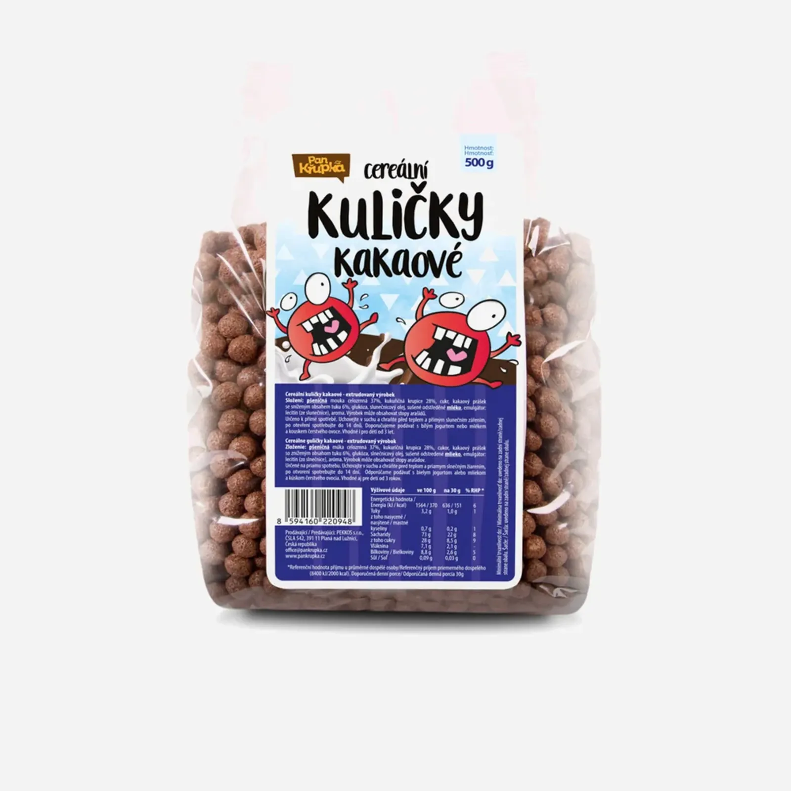 Cereálne guličky s obsahom kakaa sú príjemne sladké a chrumkavé. Vyskúšajte ich na raňajky s mliekom alebo ako desiatu s bielym jogurtom a kúskom čerstvého ovocia. Vhodné aj pre deti od 3 rokov.