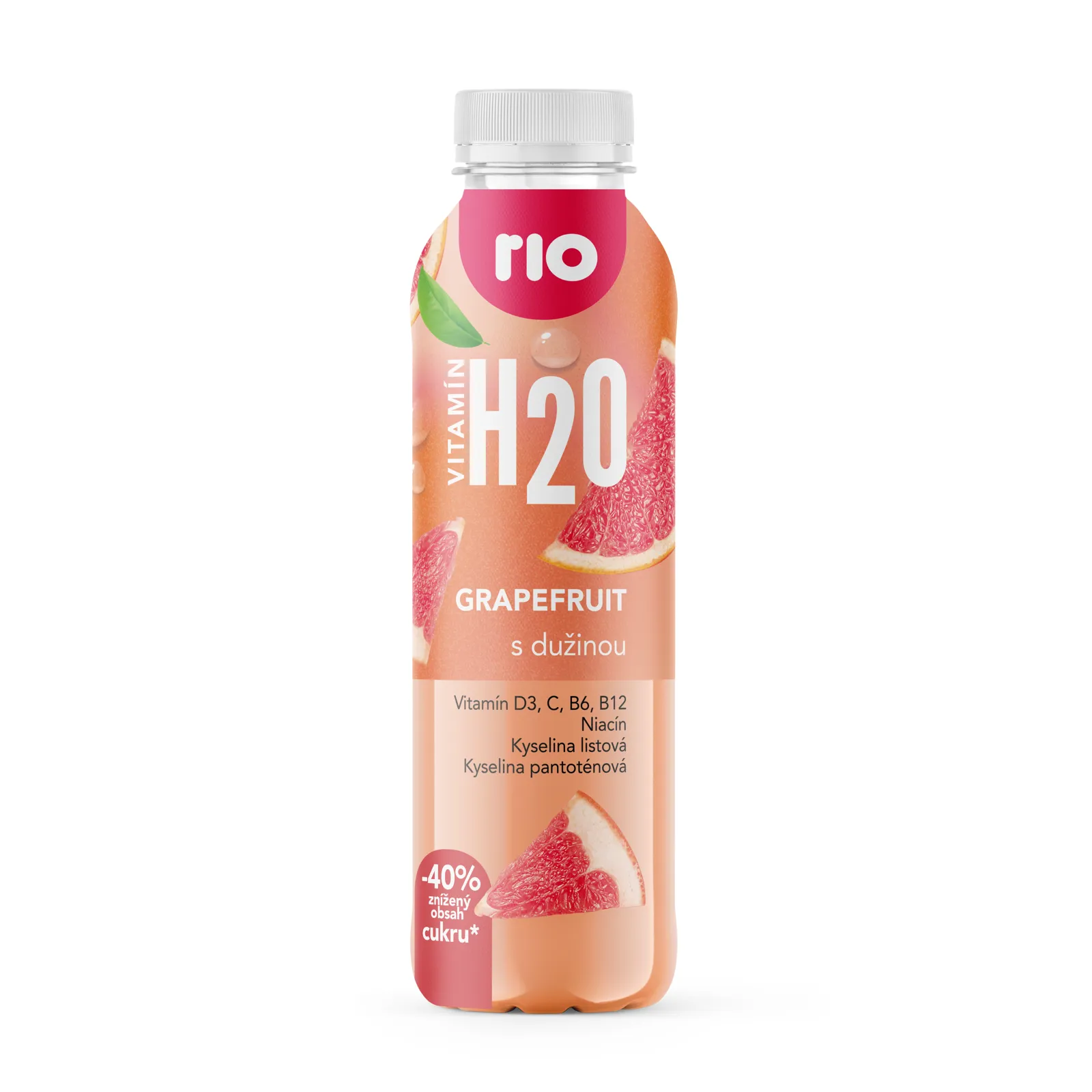 H2O grapefruit nápoj s grepovou dužinou, stevia a so zníženým obsahom cukru.