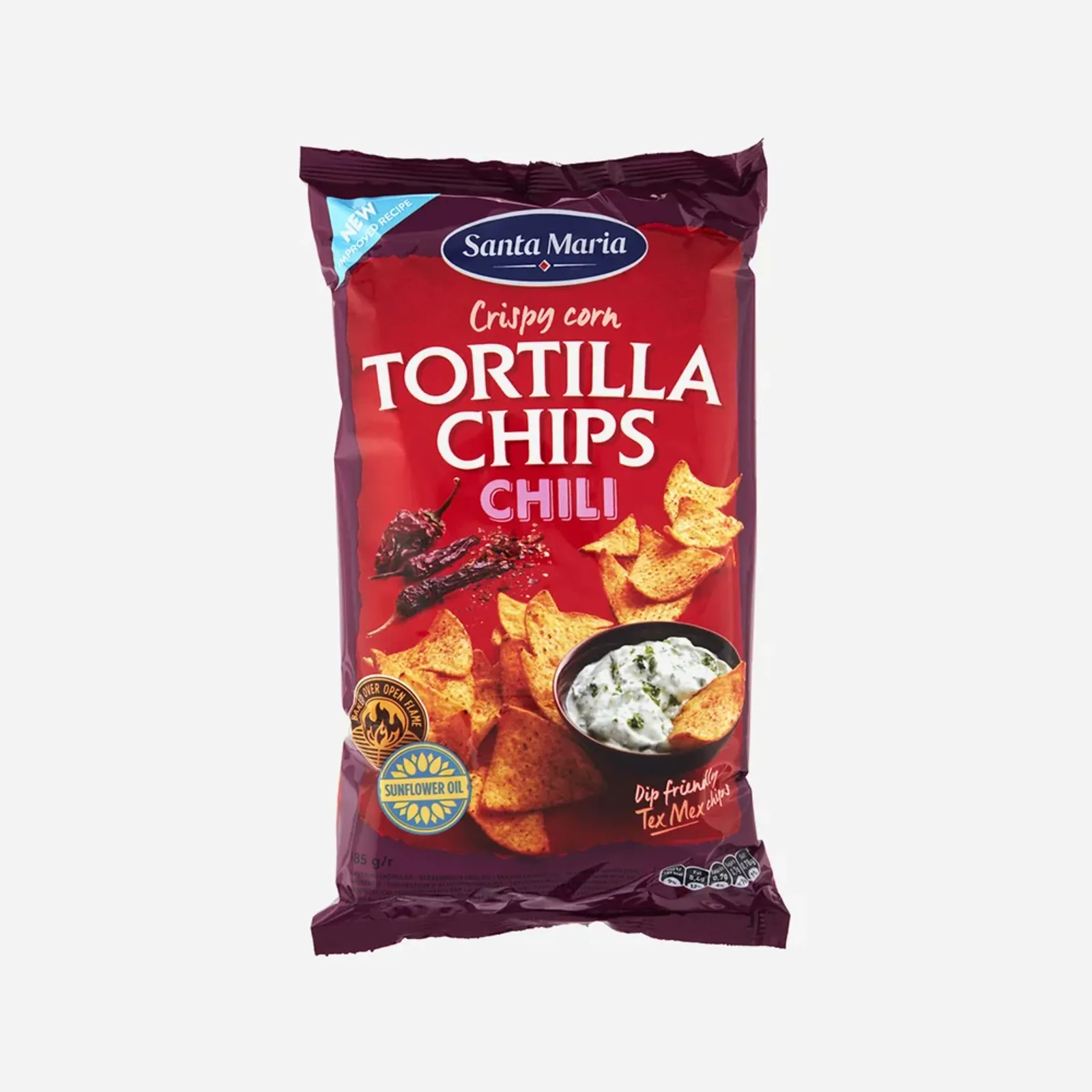 Vďaka pečenia na otvorenom ohni sú Tortilla chips s príchuťou chilli poctivo chrumkavé. Santa Maria chilli Tortilla chips skvele chutia v kombinácii so Santa Maria paradajkovým salsa dipom a Santa Maria surovými dipom. Obsahujú slnečnicový olej. Ideálne pre posedenie s priateľmi. Stačí otvoriť a zábava môže začať.