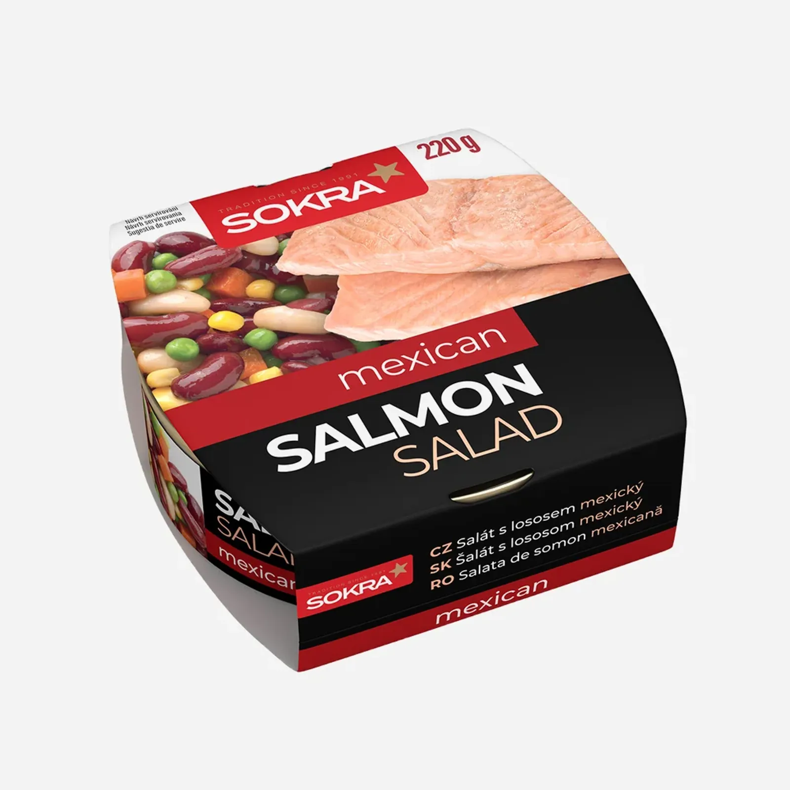 Mexický šalát s lososom, strukovinami a zeleninou.