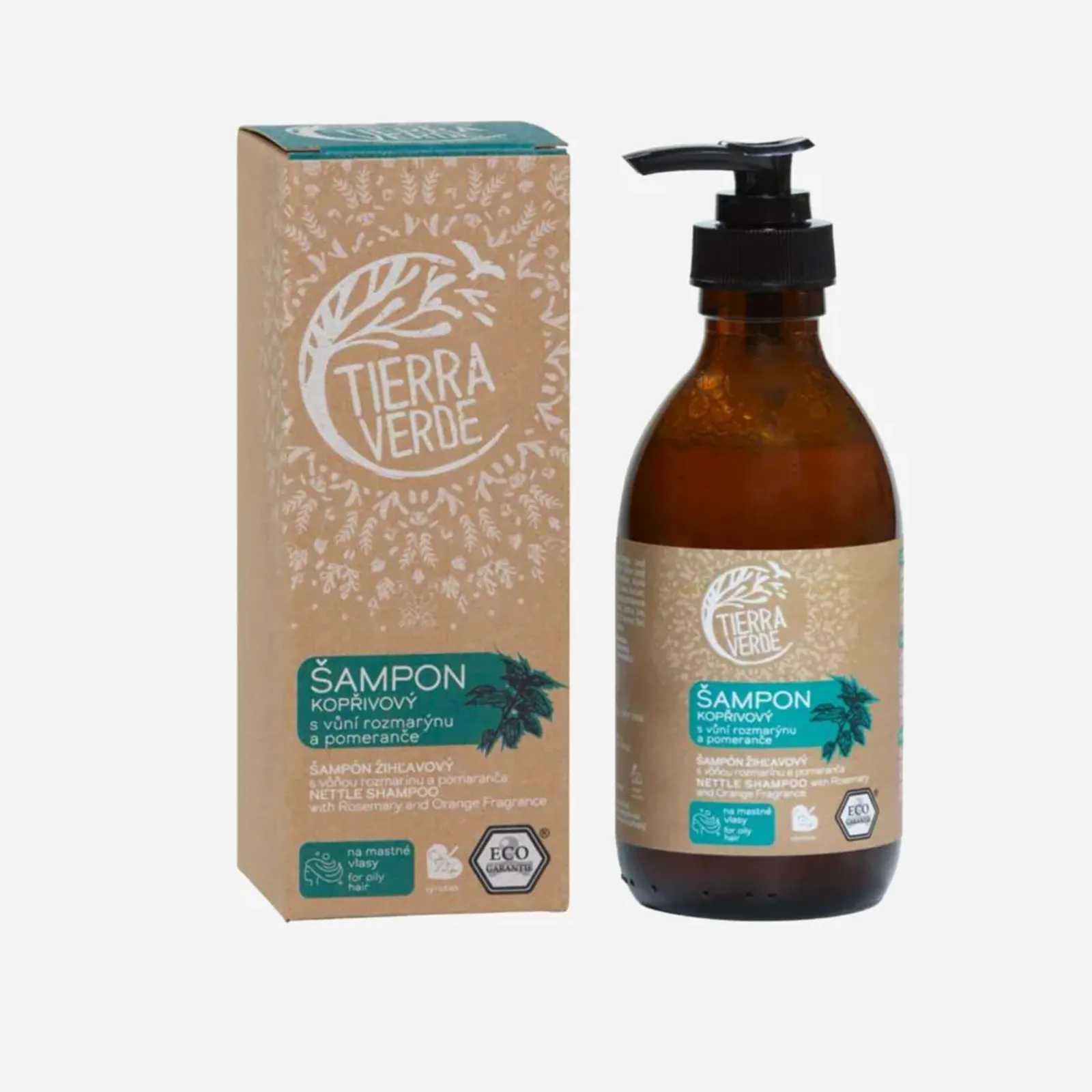 Tierra Verde Šampón žihľavový s vôňou rozmarínu a pomaranča (sklenená fľaštička), 230 ml