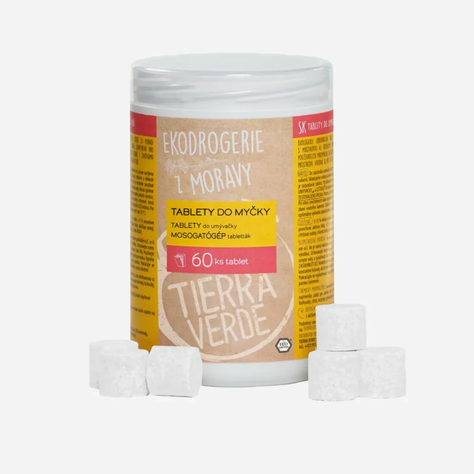 Účinné, udržateľné a užívateľsky komfortné. Tieto tablety do umývačky si poradia s mastnotou iodolnými škvrnami. Neobsahujú žiadne syntetické vône, ktoré by priľovali na riad. Vďaka šetrnému zloženiu vyhovujú aj čistiarňam odpadových vôd. Tablety nie sú jednotlivo balené, takže nevzniká zbytočný odpad. Lisuje ich repasovaná tabletovačka Laskatož, ktorú v Tierra Verde zachránili zo šrotu. Tieto tablety spĺňajú náročné kritériá popredného európskeho certifikátu Ecogarantie.