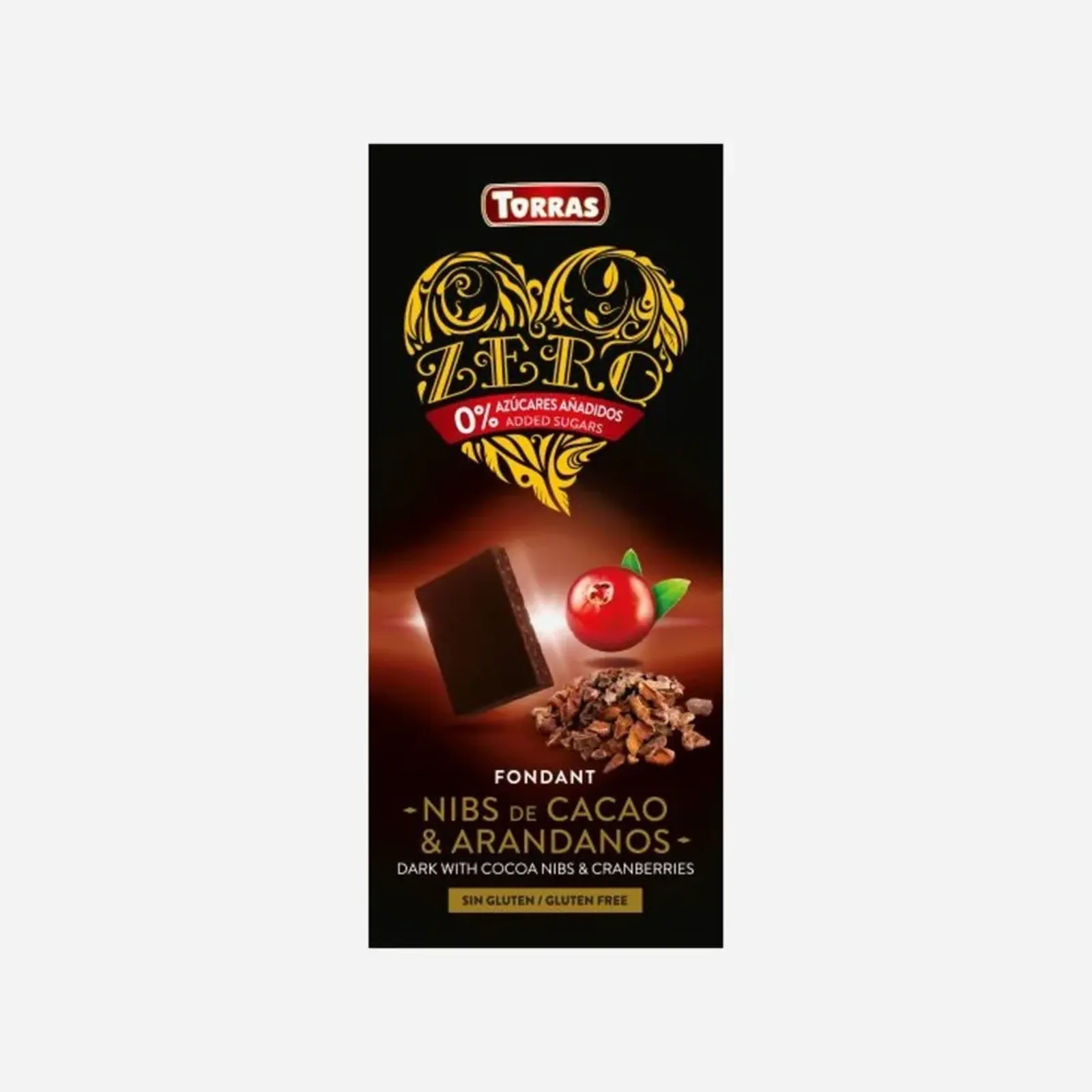Horká čokoláda s kakaovými bôbmi a brusnicami, bez pridaného cukru, bezlepková.