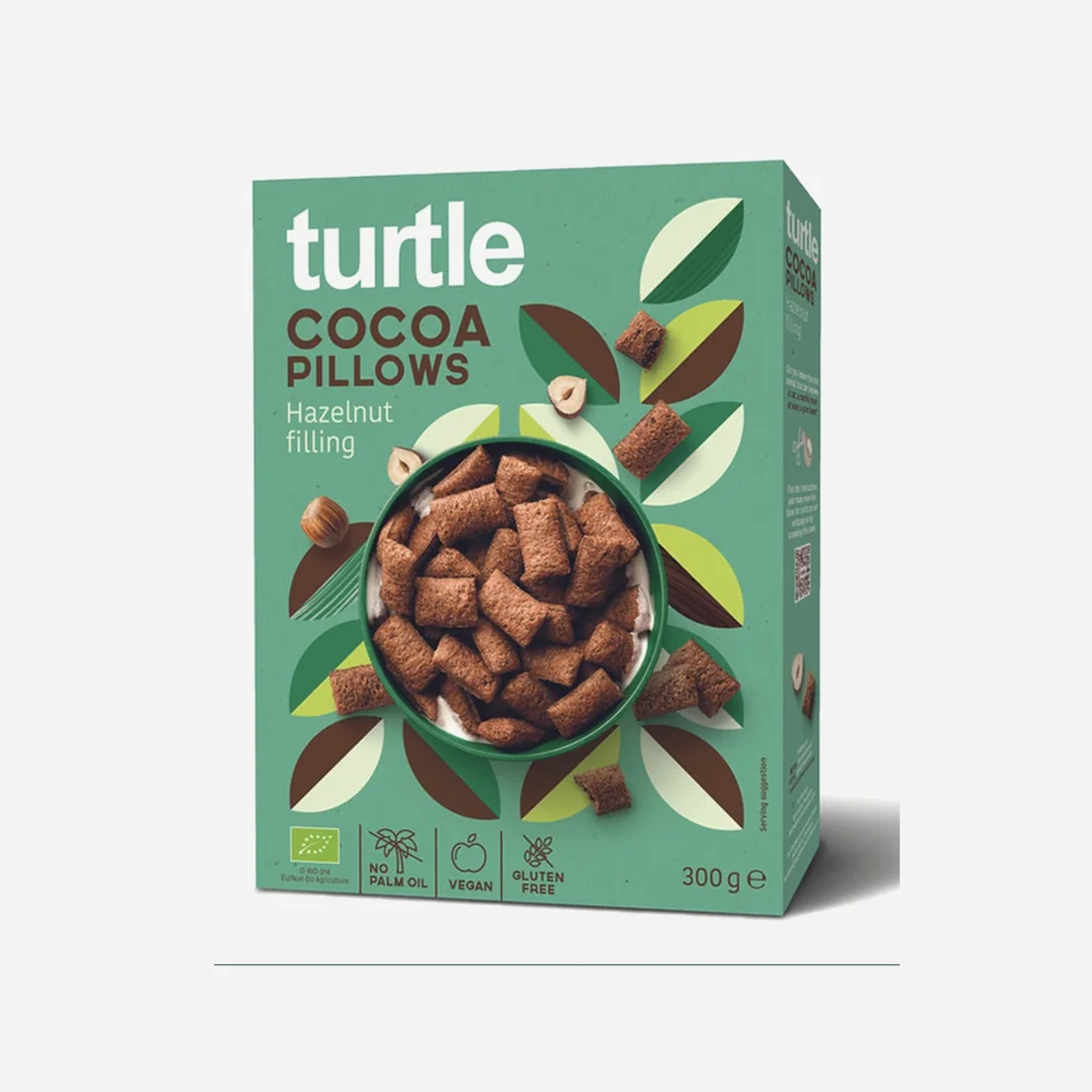 Začnite svoj deň s lahodnými Turtle Cocoa Pillows plnenými krémovou náplňou z lieskových orechov a kakaa. Tieto organické cereálie sú bezlepkové, vegánske a neobsahujú palmový olej, čo z nich robí zodpovednú a chutnú voľbu na raňajky. Vychutnajte si ich s mliekom, rastlinným nápojom alebo jogurtom a doprajte si sladký začiatok dňa plný energie. Perfektné pre celú rodinu!