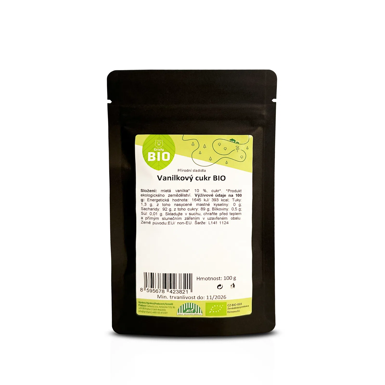 GRIZLY Vanilkový cukor BIO, 100 g