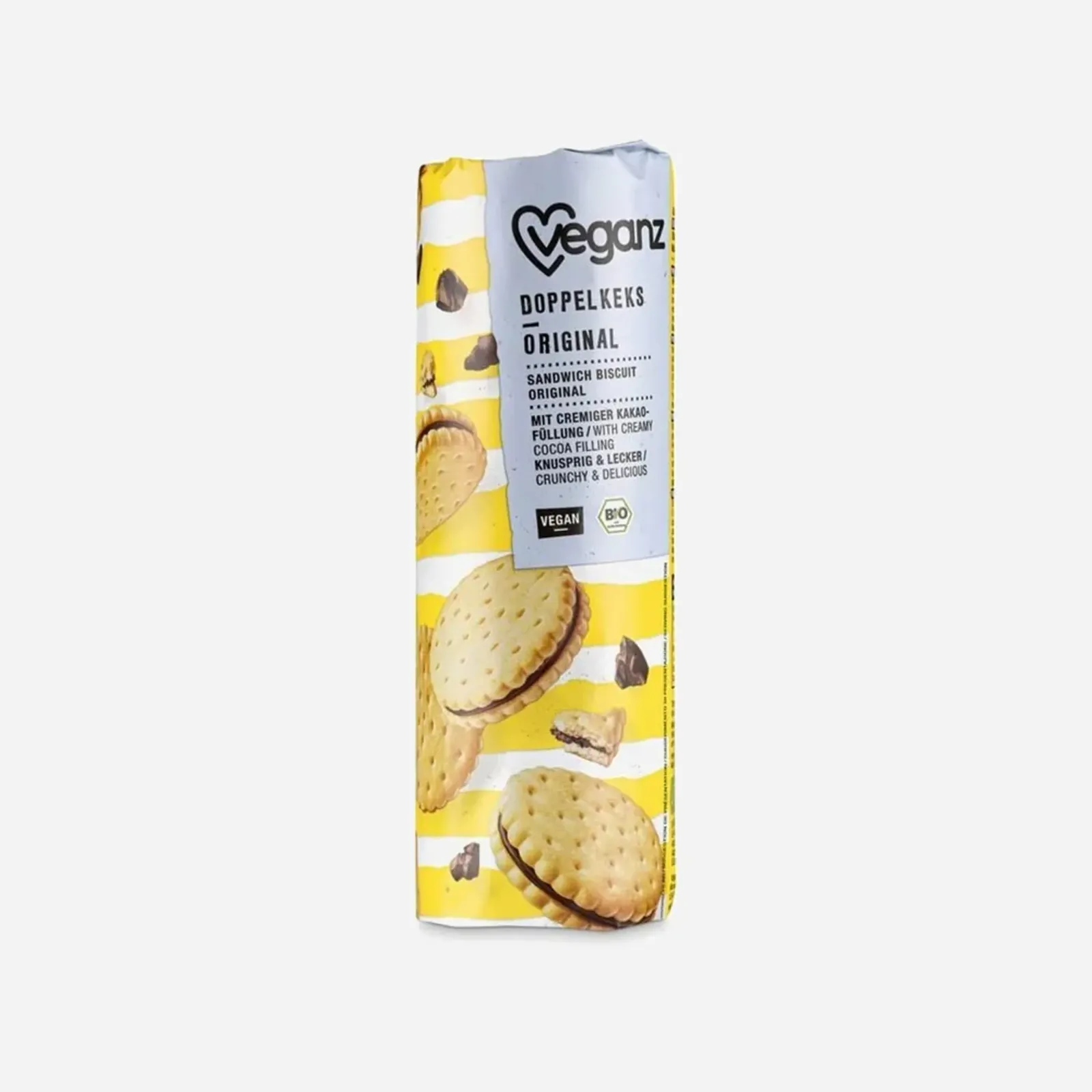 Vegánske vanilkové sušienky s lahodnou kakaovou náplňou sú skvelé samotnej aj ku káve a čaji. Produkt je od udržateľnej nemeckej značky Veganz, vyrobený v BIO kvalite.