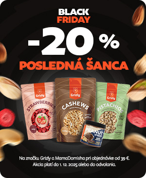 POSLEDNÁ ŠANCA: Black Friday zľava 20 % na značky GRIZLY a GRIZLY by @mamadomisha pri nákupe nad 39 €. Do konca akcie zostáva: