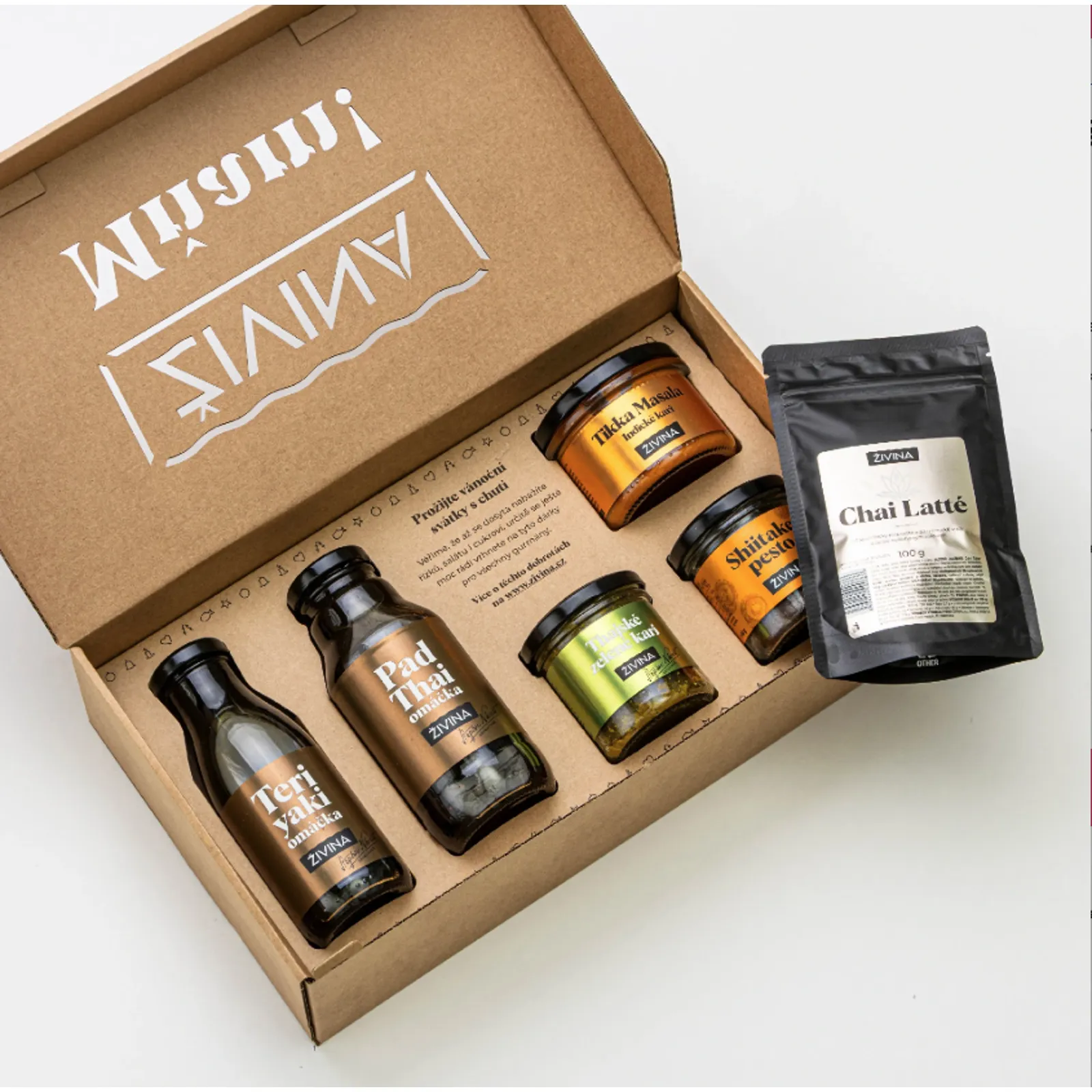 Darček milujem Živinu je „výber ich najväčších hitov“ – starostlivo zostavený zo šiestich produktov, ktoré si ich zákazníci obľúbili najviac. Ideálna ako darček pre všetkých milovníkov dobrého jedla, alebo ako zásoba chutí, na ktorú sa môže každý spoľahnúť. Od ázijských klasík cez krémové indické karí až po voňavý Chai Latté nápoj na zahriatie – s týmto balíčkom sa v kuchyni ani pri stole nikto nudiť nebude.